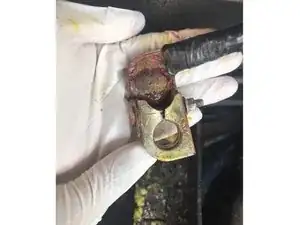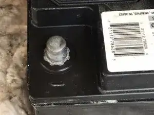 Почистите внутри и вокруг клемм щеткой для аккумулятора.