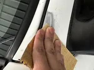 Потрите ржавую область наждачной бумагой с зернистостью 220, пока вся ржавчина не будет удалена.