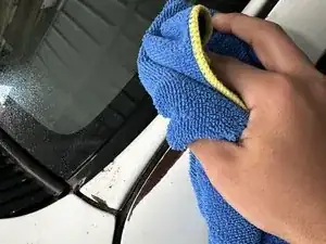 Налейте небольшое количество изопропилового спирта на микрофибровую ткань.