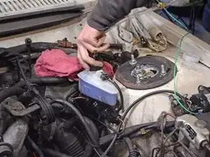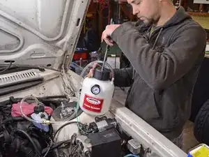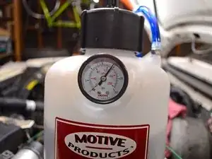 Нижеописанная процедура использует пневмопресс для прокачки Motive Power Bleeder, а не традиционную ручную прокачку. Power Bleeder значительно удобнее в использовании по сравнению с другими методами и не особенно дорог. (Примечание: iFixit никоим образом не аффилирован и не поддерживается Motive. Нам просто нравится их оборудование!)