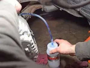 Поместите другой конец шланга в подходящую ёмкость, например бутылку или поддон для слива.