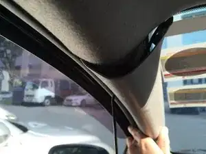 Спрячьте кабель под накладкой, оставив свободный конец ближе к пассажирскому сиденью, как показано на фото.