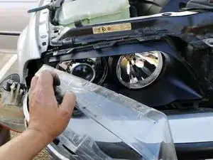 Удалите несколько клипс, удерживающих линзу фары, и аккуратно снимите линзу.