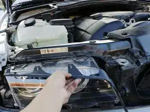 Снимите пластиковый уклад под фарами и резиновый уклад над фарами.