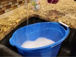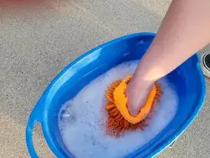 Наполните ведро среднего размера тёплой водой и добавьте немного мыла.