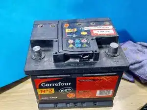 Аккумулятор, использованный в этом примере, был снят с автомобиля, так как подошёл к концу своего срока службы: он уже показывал признаки того, что автомобиль плохо заводится. Он служил с 04.12.2016 по 27.01.2023 — чуть более 6 лет.