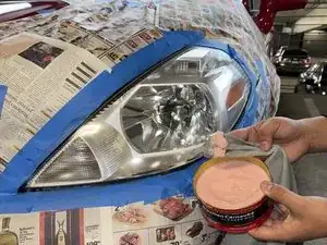 Точечно нанесите полировочный состав на фару, затем вотрите его в фару.