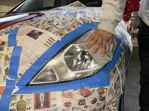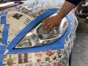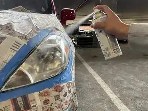 Закройте кузов автомобиля газетой, закрепив её малярной лентой.