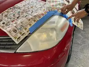 В затенённом месте нанесите малярную ленту на внешние кромки корпуса фары.