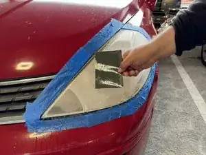 Прекратите шлифовку, когда фара станет немного менее мутной (по сравнению с предыдущим шагом).