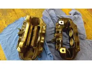 Снимите тормоза с автомобиля и разберите их. Эти суппорты Brembo были с Audi RS, но большинство 4‑поршневых версий одинаковы. Вам нужно, чтобы суппорт выглядел слева, а стал как справа.