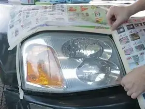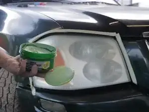 Обклейте периметр фар малярной лентой, чтобы защитить лакокрасочное покрытие автомобиля.