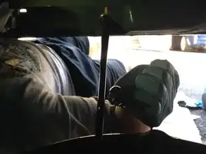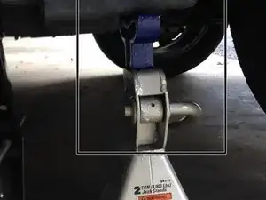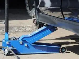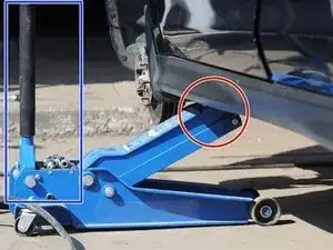 Поднимите автомобиль достаточно высоко, чтобы установить подкатной домкрат под автомобиль. Убедитесь, что он будет надежно контактировать с рамой автомобиля.