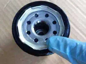 Окуните перчатку в новое масло и смочите шайбу фильтра. Это помогает создать уплотнение, чтобы не было утечек.