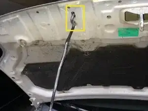 Установите подпорку капота в отверстие капота со стороны пассажира.