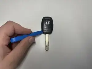 Используйте инструмент для вскрытия, чтобы поддеть корпус брелока, начиная с выемки в нижнем левом углу.