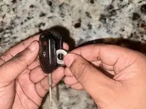 Используйте шайбу или инструмент для открытия в зазоре с правой стороны брелка, чтобы снять верхнюю крышку.