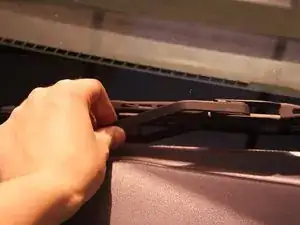 Возьмите стеклоочиститель у основания и поднимите его против часовой стрелки вокруг оси, поднимая лезвие от окна.