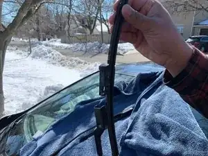 После того как щетка снята, аккуратно верните руки стеклоочистителей на лобовое стекло.