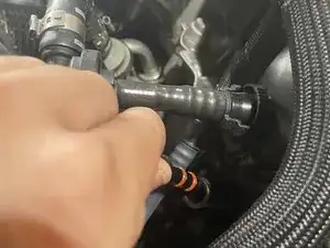 Вставьте трубку насоса в горловину для заливки/отверстие щупа. Продолжайте подавать трубку до упора.
