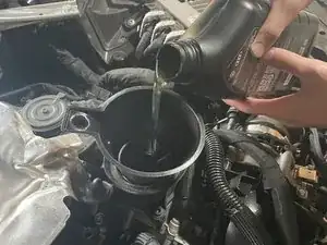 Открутите крышку заливной горловины и долейте масло в соответствии с рекомендациями производителя. Ёмкость для масла обычно указана в руководстве пользователя автомобиля. При необходимости используйте воронку, чтобы уменьшить разбрызгивание.