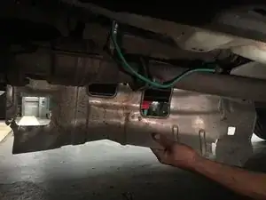 Снимите старую переднюю крышку выхлопной системы, стараясь не повредить защитное покрытие автомобиля и провода датчика кислорода.