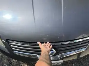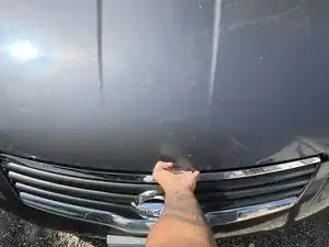 Подойдите к передней части автомобиля и убедитесь, что капот приоткрыт.