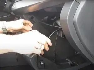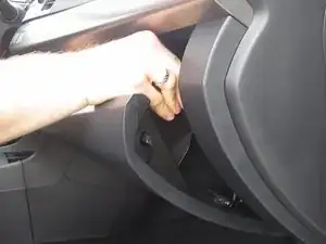 Следующий шаг критически важен. Вы сломаете амортизатор дверцы, если отсоедините фиксирующие рычаги и опустите бардачок, пока амортизатор всё ещё прикреплён. Замена требует демонтажа значительной части приборной панели, что является серьёзной работой.