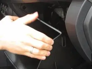 Это позволит освободить бардачок от запирающего механизма и опустить его вниз.