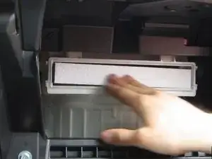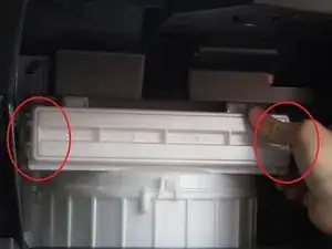 После опускания бардачка становится виден блок отопительного вентилятора. Лоток фильтра расположен в верхней части вентилятора.
