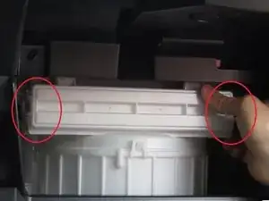 Установите новый фильтр в лоток. Жёсткие боковины фильтра располагаются по левому и правому краям лотка.