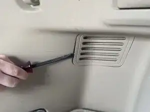 С помощью плоской отвертки снимите вентиляционную крышку, расположенную на внутренней стенке багажника.