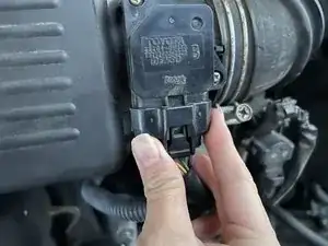 Снимите датчик массового расхода воздуха (MAF), освободив защелку сверху датчика.