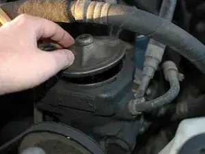 Чтобы начать процесс замены жидкости гидроусилителя, вам нужно снять крышку бачка насоса.