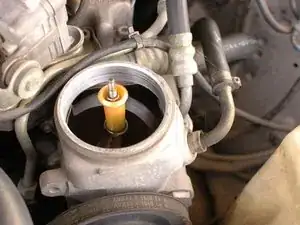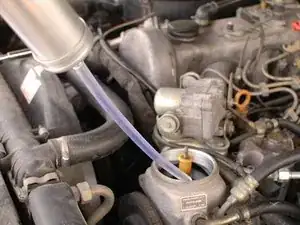 Теперь используйте экстрактор для жидкости или шприц-бастер (больше не используйте его на кухне!) чтобы откачать достаточно жидкости для свободного доступа к фильтру.