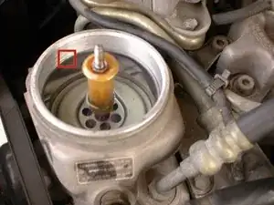 Снимите гайку, удерживающую пружину и пластиковый фиксатор, если он есть. На некоторых автомобилях есть только пружина, как показано на втором фото, её следует удалить.