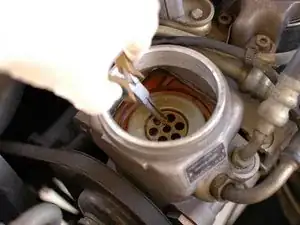 Если ваша жидкость очень грязная, просто повторите процесс отсасывания жидкости, установки фильтра, заполнения бачка, а затем запуска двигателя и поворота колеса, пока жидкость не станет чистой.
