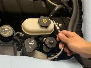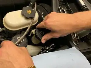 Step 11: После примерно 10–15 нажатий педали сцепления и доливки тормозной жидкости по мере необходимости, жидкость, выходящая из штуцера, должна стать чистой