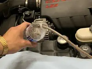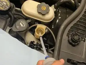 Step 4: Используйте шприц-бассер (инструмент для откачки) для удаления старой жидкости из резервуара