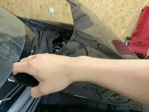 Step 14: Уберите шланг штуцера обратно за резервуар, как было изначально, и закройте капот
