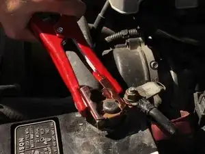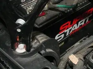 4) Закрепите другой черный зажим на непокрашенном металлическом гайке на опоре рядом с аккумулятором Jeep (Изображение 3).