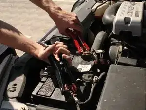 1) Подключите один красный зажим к положительному клемме аккумулятора на Jeep (это будет красное пятно на аккумуляторе) (Изображение 1)