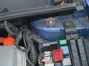 Откиньте пластиковую красную крышку с изображением знака «плюс».