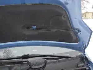 Отстегните металлическую подставку и установите её в предусмотренное отверстие, чтобы она поддерживала капот.