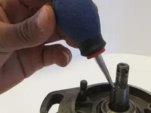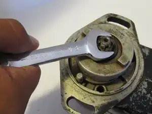 Используйте ключ на 14 мм, чтобы unscrew гайку на валу привода.