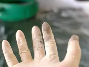 Надевание перчаток при замене масла — очень хорошая идея. Как уже было сказано, масло всё пачкает. Как видно, даже после протирки эти латексные перчатки запачкались. Представьте, что было бы с вашей кожей.