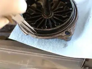 Установите новый фильтр на вал крышки корпуса. Затем вставьте фильтр в корпус и прижмите крышку, затянув две гайки, снятые на шаге 5.