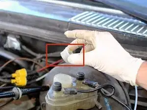 Перед тем как вставить устройство для откачки, вам нужно будет вытащить сетку в заливной горловине бачка тормозной жидкости.