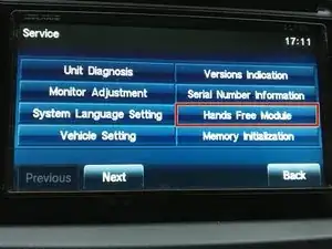 Снова войдите в раздел Hands Free Module сервисного меню.