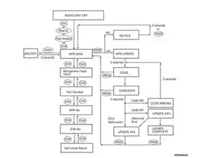 Если во время режима диагностики была нажата неверная кнопка, кроме обновления ECU hands free, режим диагностики будет отменен, а радио и CD-плеер выключатся.